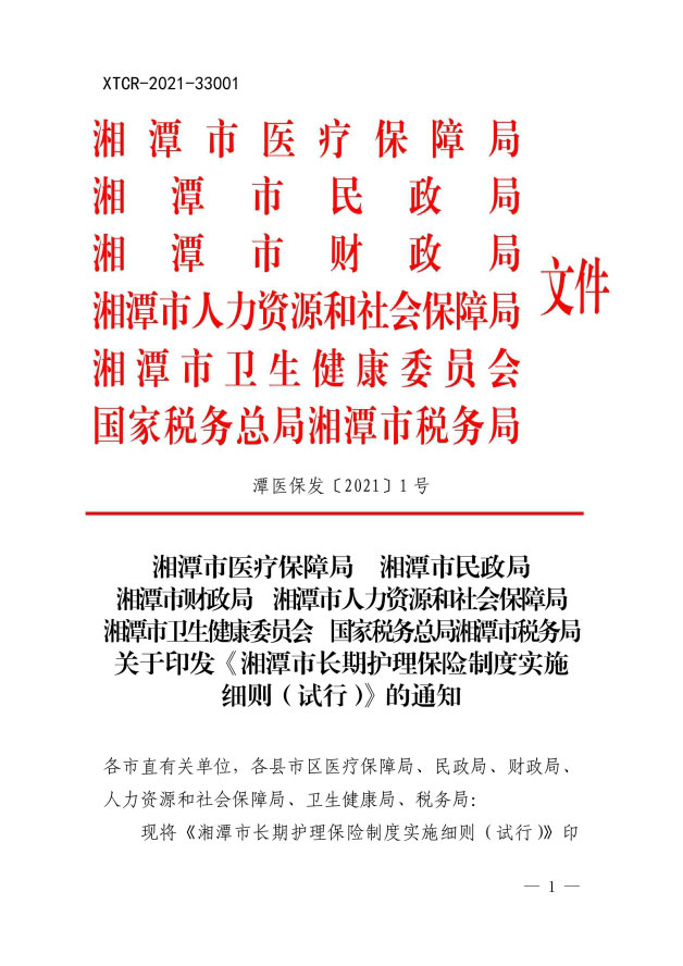 潭醫(yī)保發(fā)〔2021〕1號(hào)湘潭市長(zhǎng)期護(hù)理保險(xiǎn)實(shí)施細(xì)則